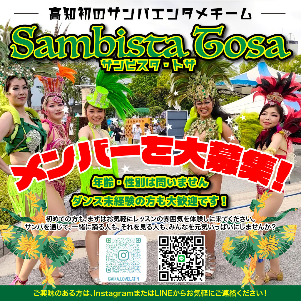今回は、高知初のサンバエンタメチーム「Sambista Tosa(サンビスタ・トサ)」 のメンバー募集フライヤーを制作しました。